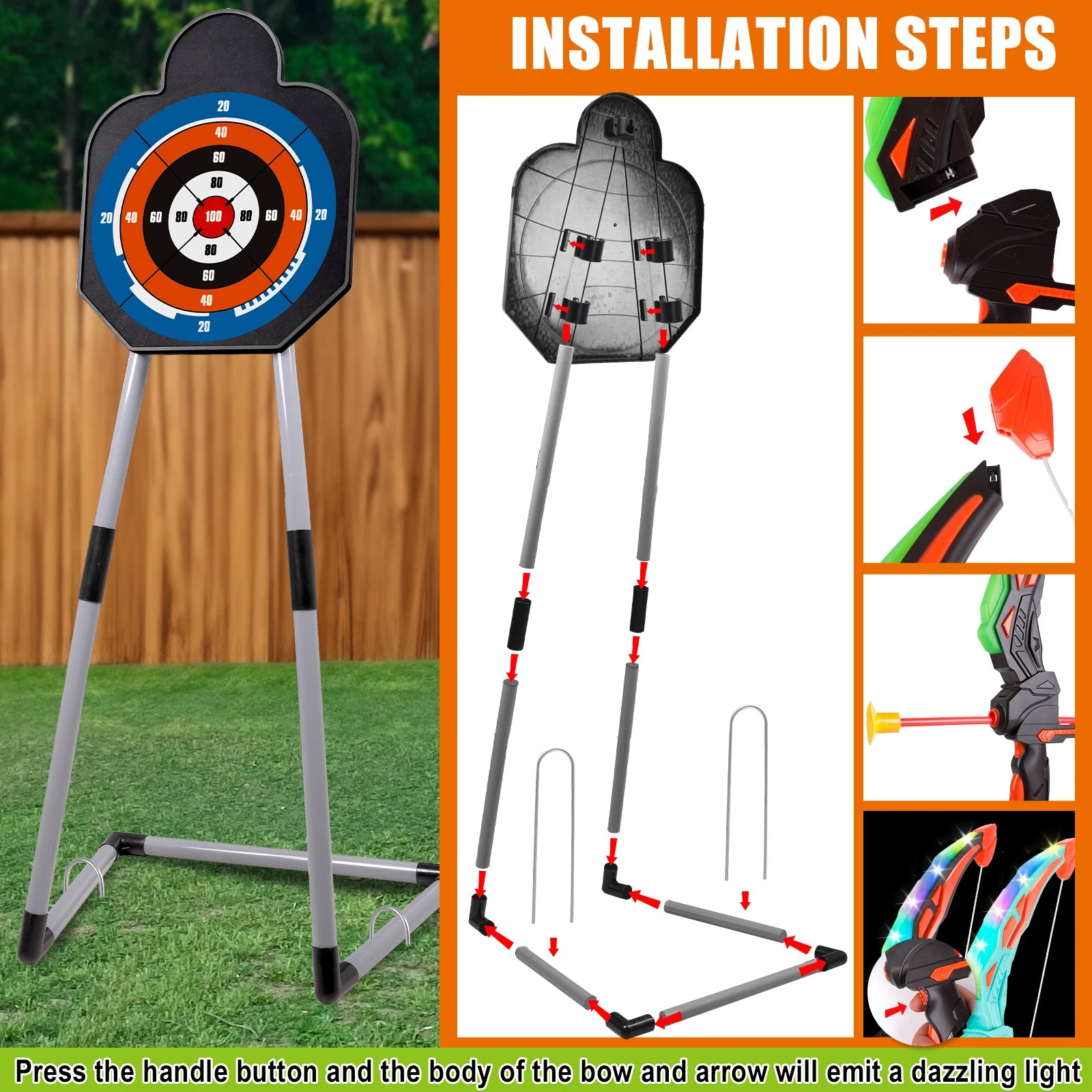 2 Bow and Arrow Sets with LED Light-up, 2 Foam Dart Guns for Kids 5 6 7 8 9 10+, Archery Set with Standing Target for Boys Girls