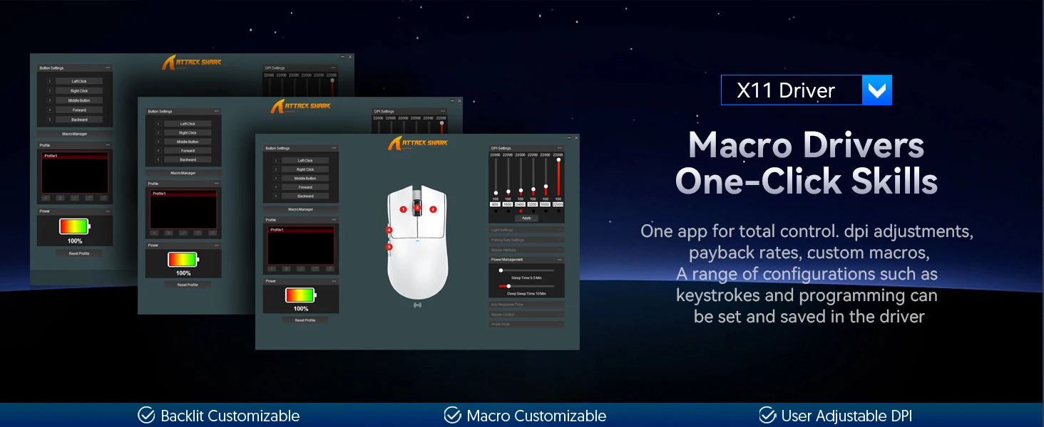 ATTACK SHARK X11 Lightweight Three-mode Wireless Gaming Mouse with RGB Charging Dock Optical Sensor PAW3311 22K DPI PC/Mac