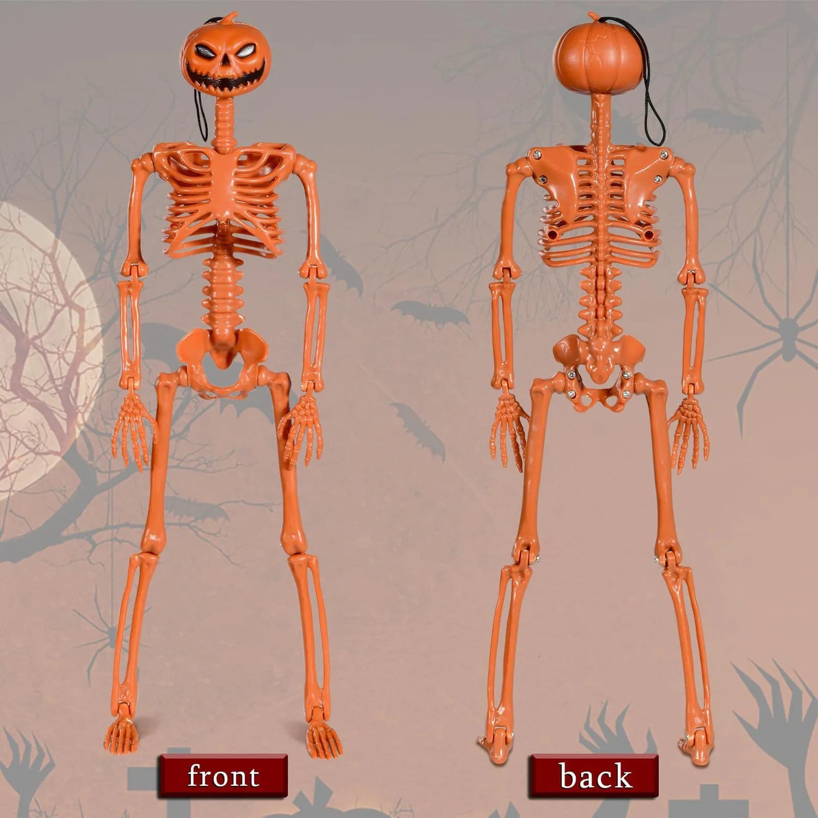 The Halloween skeleton can sit, stand, hang or be positioned any other way you like. Also it will be very cool to dress up these skeletons for Halloween or any other parties.