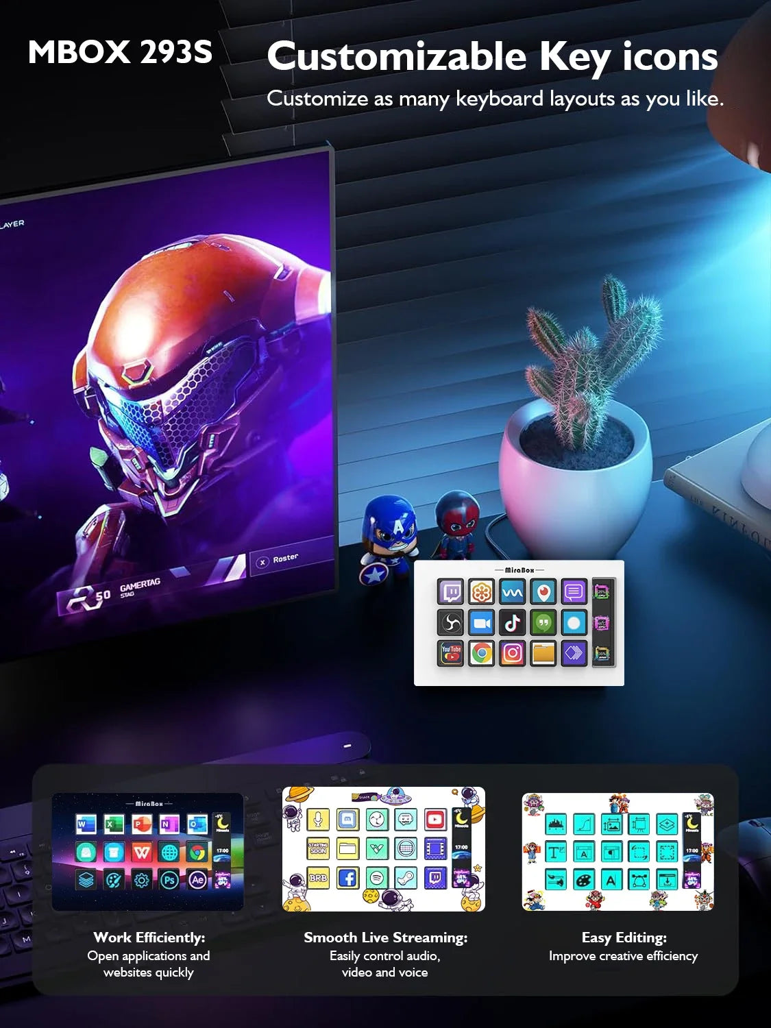 Mirabox 293s Streamdeck Visual 15 Keys Mini Keyboard Lcd Button Living Controller Button For Win/Macos Desktop Controller Custom