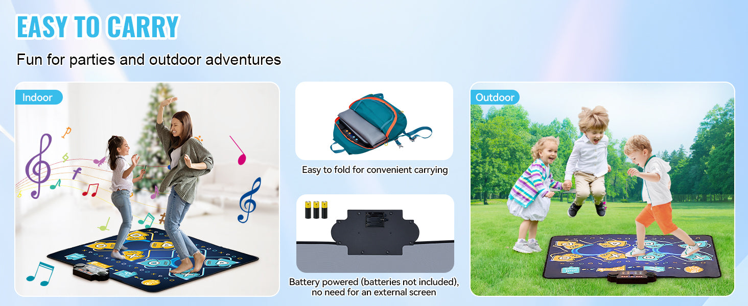 Easy to Store and Carry: Its lightweight and supple construction allows for effortless folding and convenient storage. Powered by 3 AA batteries (not supplied), the wireless and portable design enables dancing escapades without the encumbrance of cords, anytime and anywhere.